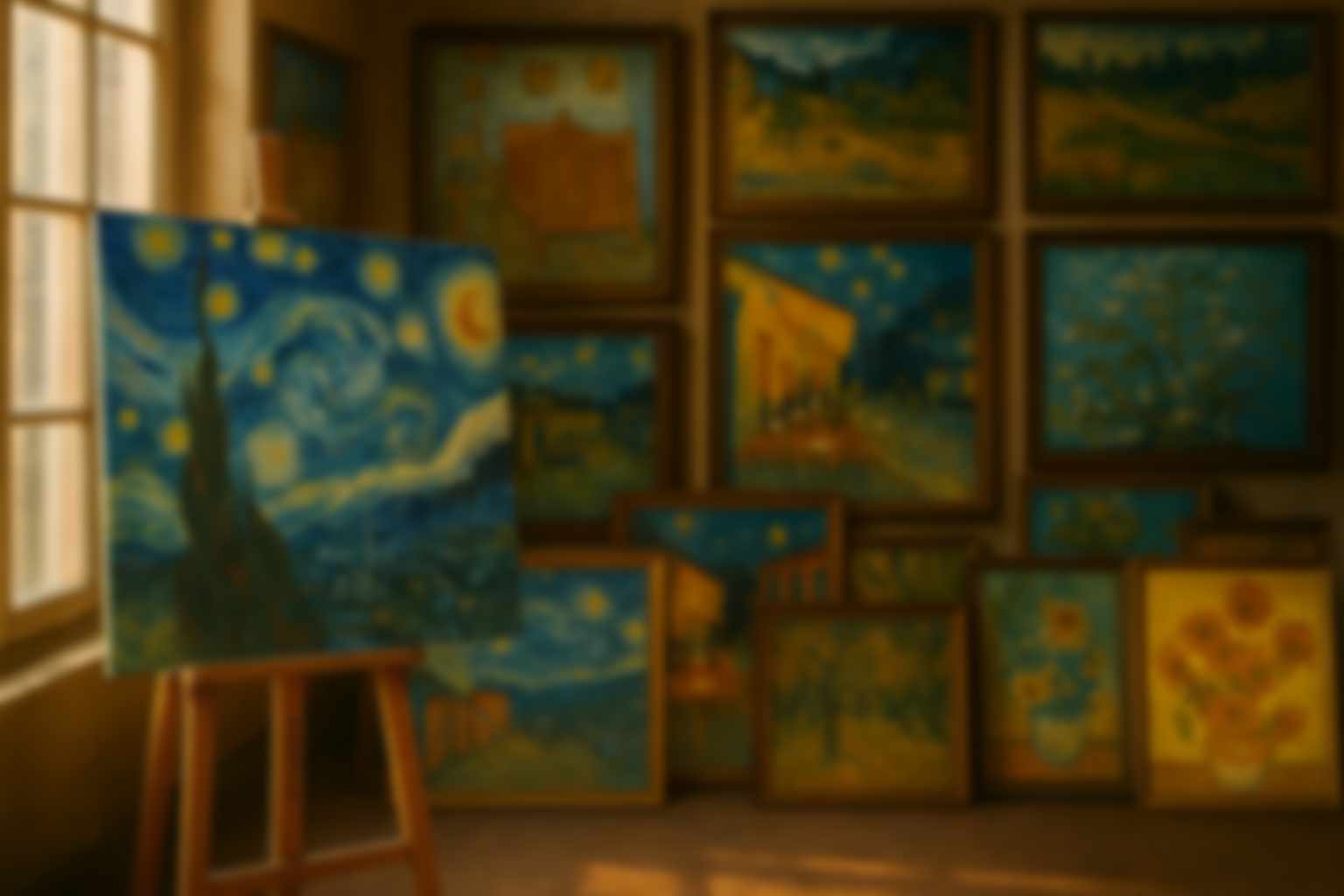 I painted the same sky a hundred times — until I could feel its wind. Every layer of blue taught me patience; every glint of yellow, faith. What I create now is not imitation, but conversation — between my brush and the light he left behind.